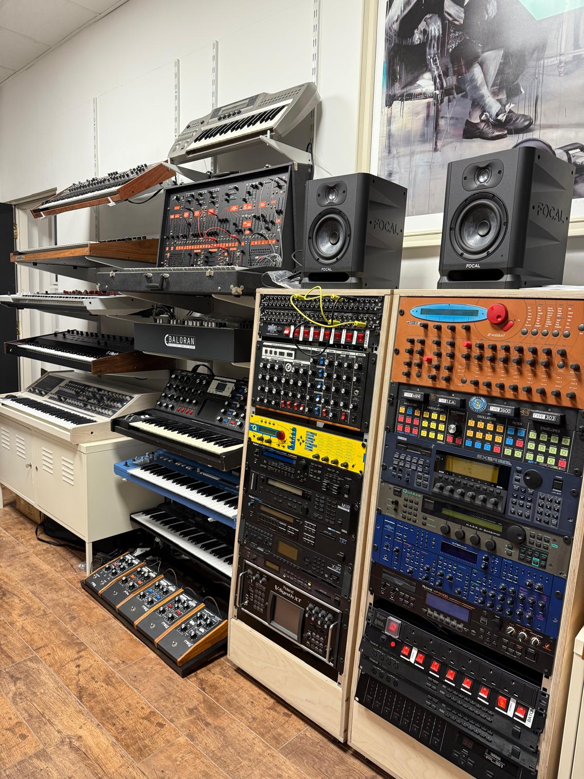 The Lab is our creative room featuring a range of equipment to jam and record with. At the heart of the room is the Colossus from Analogue Solutions that can be linked up to our various Eurorack units, RSF Kobol Expander and a variety of synths, drum machines, samplers and sequencers.